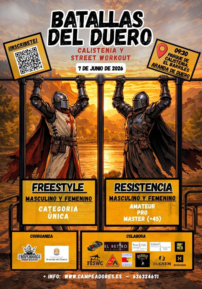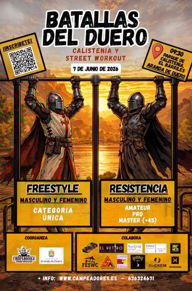 El próximo 7 de junio de 2026, la ciudad de Aranda de Duero acogerá la primera edición de la Competición de Street Workout: Batallas del Duero. Un evento que reunirá a atletas, aficionados y público para disfrutar de una jornada llena de deporte, espectáculo y comunidad.