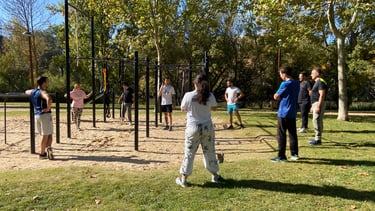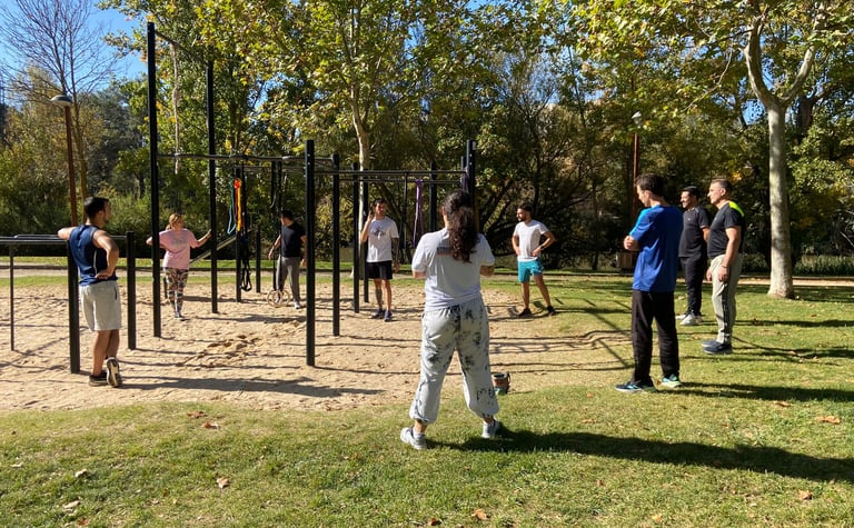 Pusimos el foco, como en el anterior taller, en la técnica y en ver muchas de las progresiones que existen de los ejercicios básicos que conforman la calistenia. Nuestro objetivo era hacer ver que cualquiera puede practicar nuestra disciplina.
